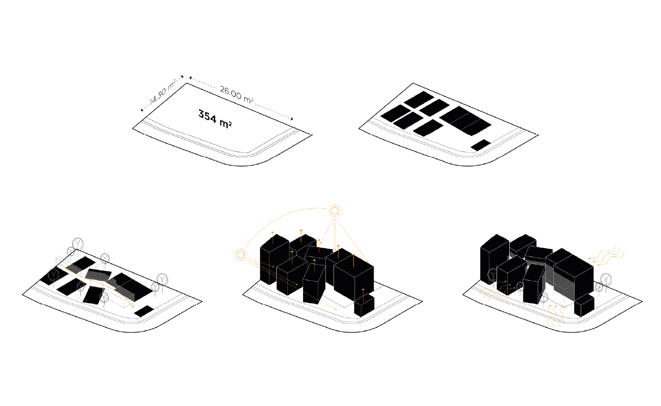 El proyecto reinterpreta la dicotomía tradicional casa-patio, dejando patios interiores para cada uno de los espacios, otorgándoles vitalidad digna, ya que cada uno de ellos cuentan con iluminación natural, ventilación y vegetación.