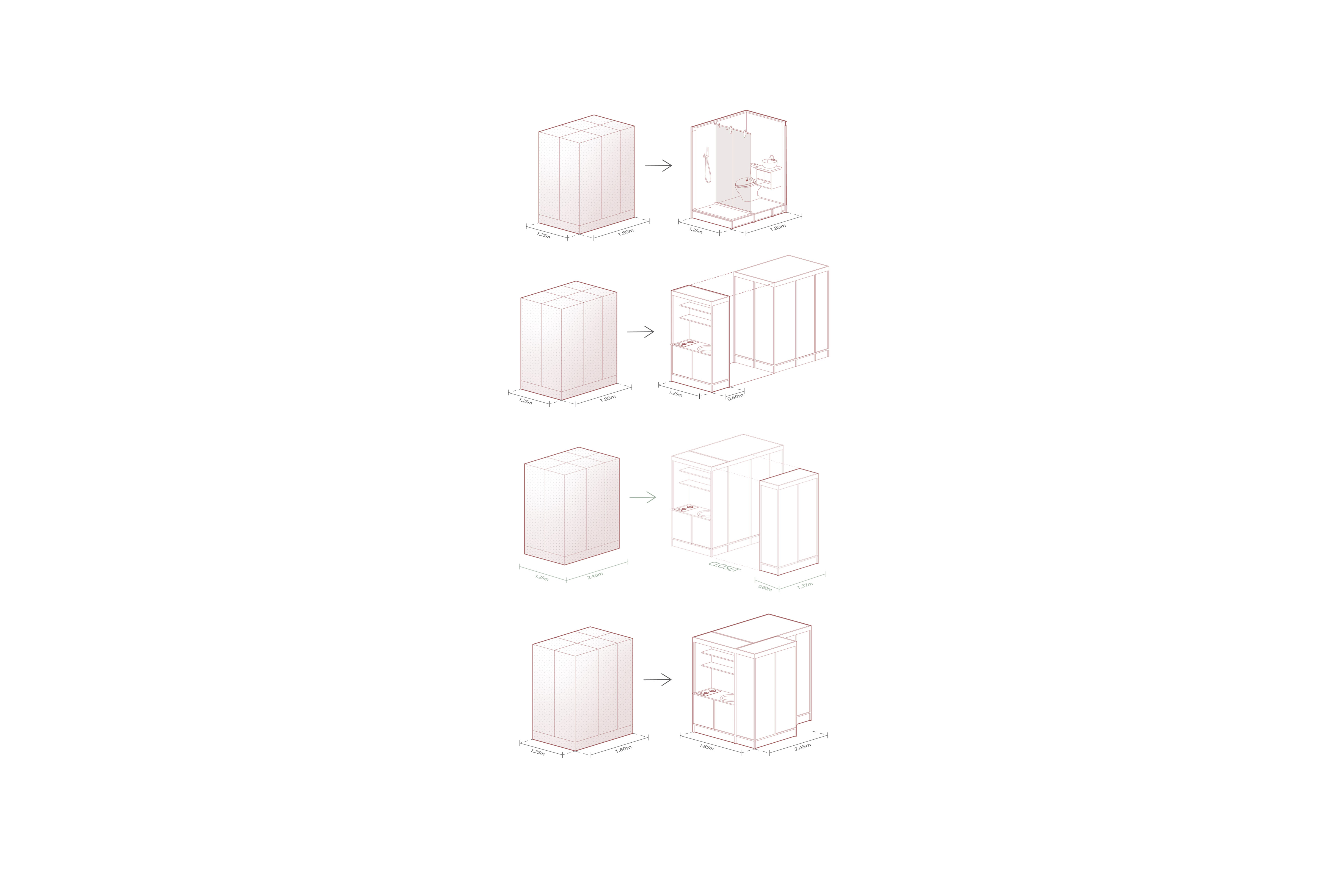 La esencia de CoLiving Tabacalera radica en el CoLiving. Baños y espacios húmedos se vuelven móviles, reorganizables según las necesidades cambiantes de los residentes. Esta flexibilidad ofrece adaptación futura y versatilidad al diseño. El proyecto trasciende el rediseño arquitectónico: es una invitación a la innovación y adaptabilidad en el diseño de espacios.
